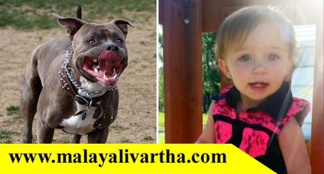 അമേരിക്കയിൽ വളർത്തു നായ വീടിനകത്ത് കളിച്ചുകൊണ്ടിരുന്ന ഒരു വയസ്സുകാരിയെ കടിച്ചുകീറിക്കൊന്നു. പിറ്റ്ബുള് വര്ഗത്തില്പ്പെട്ട നായ ട്രിനിറ്റി ഹാരല് എന്ന ബാലികയെ കടിച്ചു കീറിയത്. നായ ഒരുപാട് സമയം കുട്ടിയെ വായ്ക്കുള്ളില് തന്നെ കടിച്ചു പിടിച്ചിരുന്നു.