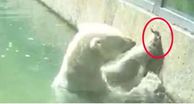 ജർമ്മനിയിൽ പോളാർ ബിയറിന് ഭക്ഷണമായി വെള്ളത്തിലേക്കിട്ടു നല്കിയ പക്ഷിയുടെ ജീവന് പോളാര് ബിയര് രക്ഷിക്കുവാന് ശ്രമിക്കുന്നതിന്റെ ഹൃദയസ്പര്ശിയായ വീഡിയോ സോഷ്യൽ മീഡിയയിൽ വൈറലാകുന്നു. ജര്മനിയിലെ ഒരു മൃഗശാലയിലാണ് സംഭവം.