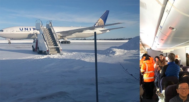 രോഗിയായ യാത്രക്കാരനെ ആശുപത്രിയിലേക്കു മാറ്റിയതിനു പിന്നാലെ വിമാനത്തിന്റെ വാതില് തണുപ്പില് ഉറച്ചുപോയി. മൈനസ് 30 ഡിഗ്രി സെല്ഷ്യസാണ് കാനഡയിലെ താപനില. വാതില് ഉറഞ്ഞ് അടയ്ക്കാന് കഴിയാതെ വന്നതോടെ യാത്രക്കാര് തണുത്തുവിറയ്ക്കുകയായിരുന്നു. ന്യൂജഴ്സിയിലെ ന്യൂമാര്ട്ടില്നിന്ന് 250 യാത്രക്കാരുമായി ഹോങ്കോങ്ങിലേക്കു യാത്ര തിരിച്ചതായിരുന്നു യുണൈറ്റഡ് എയര്ലൈന്സ് വിമാനം.