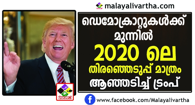 എന്നാൽ തന്റെ നിര്ദേശം ചര്ച്ച ചെയ്യാന് പോലും തയാറാകാത്ത ഡെമോക്രാറ്റ് നേതാക്കള് രാജ്യത്തേക്കു വരുന്ന അക്രമികളെയും മയക്കു മരുന്നു കടത്തുകാരെയും കാണുന്നില്ലെന്നും , 2020 ലെ തെരഞ്ഞെടുപ്പു മാത്രമാണ് അവര് ലക്ഷ്യം വയ്ക്കുന്നതെന്നും കുറ്റപ്പെടുത്തി. അതില് അവര് വിജയിക്കാന് പോകുന്നില്ലെന്നും ട്രംപ് കൂട്ടിച്ചേര്ത്തു.