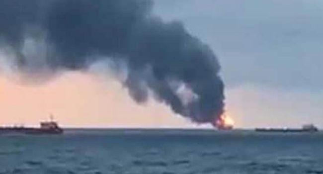 റഷ്യയിലെ കെര്ഷ് കടലിടുക്കില് കപ്പലുകള്ക്ക് തീപിടിച്ച് 11 മരണം...