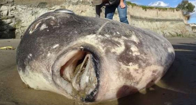 പല്ലുകളും, വാലുമില്ലാത്ത ഹുഡ്വിങ്കര് സണ്ഫിഷ് കരയ്ക്കടിഞ്ഞു