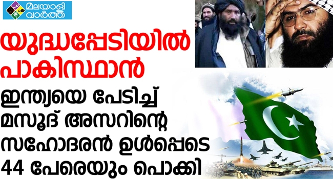 യുദ്ധപ്പേടിയില് പാകിസ്ഥാന്... ജെയ്ഷെ മുഹമ്മദ് തലവന് മസൂദ് അസറിന്റെ സഹോദരന് അബ്ദുള് റൗഫ് അഷ്ഗര് ഉള്പ്പെടെ ഭീകര സംഘടനകളുമായി ബന്ധമുള്ള 44 പേരെ പാക്കിസ്ഥാന് കരുതല് തടങ്കലിലാക്കി