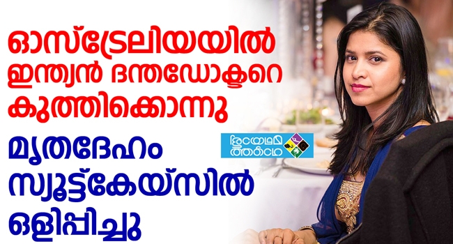 ഓസ്ട്രേലിയയിൽ യുവ ഇന്ത്യൻ ഡോക്ടറെ വെട്ടിനുറുക്കി കൊലപ്പെടുത്തി; മൃതദേഹം സ്വന്തം കാറില് ഒരു സ്യൂട്ട്കേയ്സിൽ; മരണത്തിൽ ദുരൂഹത
