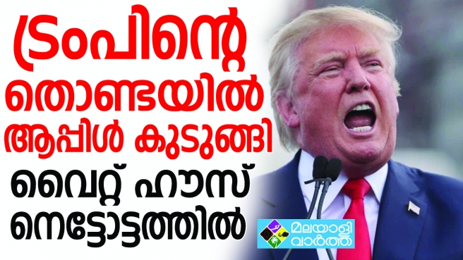 ട്രംപിന്റെ തൊണ്ടയില് ആപ്പിള് കുടുങ്ങി; വൈറ്റ് ഹൗസില് നടന്ന ഒരു യോഗത്തിനിടെ ആപ്പിള് സിഇഓ ടിംകുക്കിനെ 'ടിം ആപ്പിള്' എന്ന് ട്രംപ് വിളിച്ചു; വൈറ്റ് ഹൗസ് നെട്ടോട്ടത്തില്