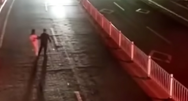 ഭാര്യയുമായുണ്ടായ തർക്കത്തിനൊടുവിൽ ഭാര്യയുടെ സ്നേഹം അളക്കാൻ തിരക്കേറിയ റോഡിനു നടുവിൽ നിന്നയാളെ വാഹനമിടിച്ചു. ചൈനയിലെ ഷിൻജിയാങ് പ്രവിശ്യയിലാണ് സംഭവം നടന്നത്. യുവാവും ഭാര്യയും റോഡിൽ നിന്നു വഴക്കിടുന്നത് ദൃശ്യങ്ങളിൽ കാണാം. വാഹനങ്ങൾ കടന്നു പോകുന്ന റോഡിന്റെ നടുവിൽ നില്ക്കുന്ന ഭര്ത്താവിനെ പിടിച്ചു വലിച്ചു സുരക്ഷിതനാക്കാൻ ഭാര്യ ശ്രമിക്കുന്നുണ്ട്. എന്നാൽ ഇയാൾ ബലം പിടിക്കുകയും റോഡിനു നടുവിൽ നിന്നു മാറാൻ സമ്മതിക്കുന്നുമില്ല. തുടർന്നും റോഡിനു നടുവിൽ നിൽക്കുമ്പോഴാണ് ഒരു വാഹനം ഇടിച്ചു തെറിപ്പിച്ചത്.