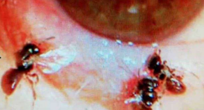 ഷഡ്പദങ്ങളുടെത് പോലുള്ള കാലുകളാണ് കണ്പോളയില് ആദ്യം കണ്ടത്. തുടര്ന്നാണ് മെെക്രോസ്കോപ് വഴി പരിശോധന നടത്തിയതെന്നും ലോകത്ത് ആദ്യമായാണ് ഇങ്ങനെയൊരു സംഭവമെന്നും ഡോക്ടര് ഹാംഗ് ടി.ചിന് പറഞ്ഞു. അടുത്തിടെ ബന്ധുവിന്റെ ശവക്കല്ലറ വൃത്തിയാക്കുന്നതിനിടെ എന്തോ കണ്ണില് പോയതായി യുവതിക്ക് തോന്നിയിരുന്നു. എന്നാല്, ആ സമയത്ത് ശ്രദ്ധിച്ചിരുന്നില്ലെന്നും യുവതി അഴുക്ക് വെള്ളത്തില് കണ്ണ് കഴുകിയതായും അവര് പറഞ്ഞു.