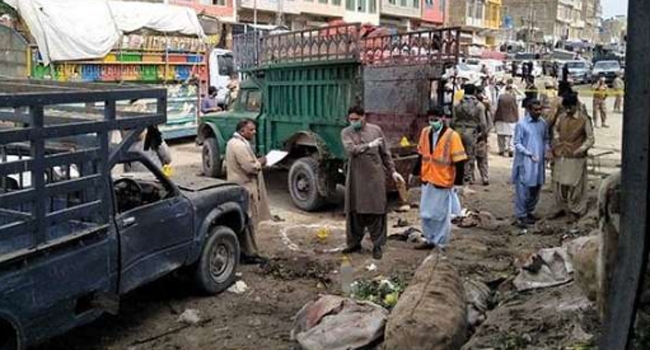പാക്കിസ്ഥാനിലെ ബലൂചിസ്ഥാന് പ്രവിശ്യയിലെ ക്വറ്റയിലെ പച്ചക്കറി മാര്ക്കറ്റിലുണ്ടായ സ്ഫോടനത്തില് 21 പേര് കൊല്ലപ്പെട്ടു. 50 പേര്ക്കു പരിക്കേല്ക്കുകയും ചെയ്തു.ഹസാര വിഭാഗത്തില്പ്പെട്ട ഷിയാ ന്യൂനപക്ഷങ്ങളെ ലക്ഷ്യമിട്ടാണ് ആക്രമണം നടത്തിയതെന്നാണ് നിഗമനം.