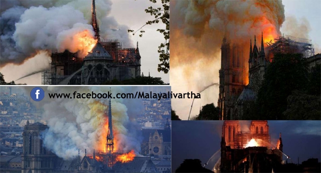 ക്രിസ്തീയ വിശ്വാസികള്ക്ക് ഏറെ പ്രാധാന്യമുള്ള പാരീസിലെ പുരാതനമായ നോത്ര ദാം കത്തീഡ്രലില് വന് അഗ്നിബാധ. പള്ളിയുടെ പ്രധാന ഗോപുരവും മേല്ക്കൂരയും പൂര്ണമായും കത്തി നശിച്ചു. മണിക്കൂറുകള് നീണ്ട പരിശ്രമത്തിനൊടുവില് തീഅണയ്ക്കാന് സാധിച്ചു. വിശുദ്ധ തിരുശേഷിപ്പുകള്ക്ക് പുറമെ നൂറ്റാണ്ടുകള് പഴക്കമുള്ള നിരവധി അമൂല്യ കലാവസ്തുക്കളും പെയിന്റിങ്ങുകളും ഇവിടെ സൂക്ഷിച്ചിട്ടുണ്ട്. ഇവ പൂര്ണ്ണമായും സുരക്ഷിതമാണെന്നുള്ള കാര്യത്തില് വ്യക്തതയില്ല.