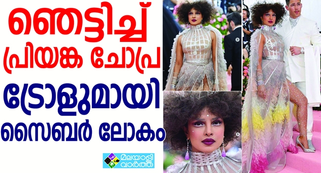 ന്യൂയോര്ക്കില് വെച്ച് നടന്ന ലോകത്തിലെ ഏറ്റവും വലിയ ഫാഷന് മേളയായ മെറ്റ് ഗാലയില് പങ്കെടുക്കാനെത്തിയ പ്രിയങ്ക ചോപ്രയാണ് ഇപ്പോള് സോഷ്യല് മീഡിയയിലെ ചര്ച്ചാ വിഷയം. വേദിയിലെത്തിയ പ്രിയങ്ക അണിഞ്ഞിരുന്ന വസ്ത്രവും മേക്കപ്പും ഹെയര് സ്റ്റൈലുമാണ് പ്രിയങ്കയുടെ ആരാധകരെ അമ്ബരപ്പിച്ചിരിക്കുന്നത്. പ്രിയങ്കയുടെ ആ വെറൈറ്റി ലുക്കിനെപ്പറ്റി അനേകം ട്രോളുകളാണിപ്പോള് വന്നുകൊണ്ടിരിക്കുന്നത്.