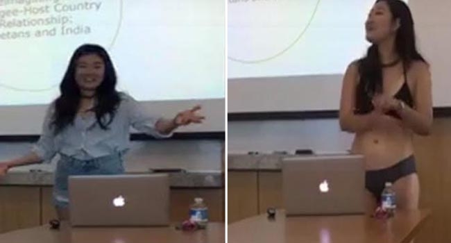 വിദ്യാര്ഥിനി തീസിസ് അവതരിപ്പിച്ചത് അടിവസ്ത്രങ്ങള് മാത്രം ധരിച്ച്!