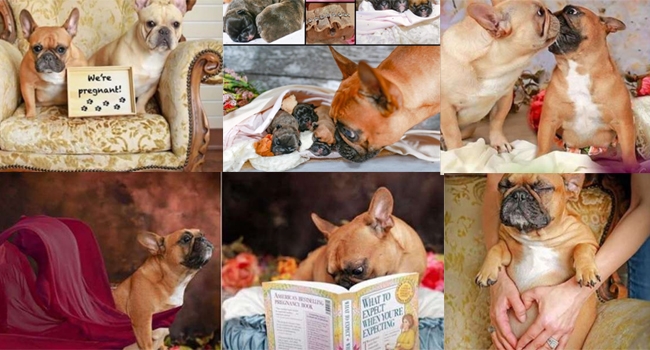 ടെക്സസിലെ എല് കാമ്പോയില് നിന്നുള്ള കോസെറ്റ് & ബൗഡ്രോ എന്നിവരുടെ മെറ്റേണിറ്റ് ഫോട്ടോഷൂട്ടാണ് ഇന്റര്നെറ്റില് തരംഗം സൃഷ്ടിക്കുന്നത്. എന്തുകൊണ്ടാണെന്ന് ആശ്ചര്യപ്പെടുന്നുണ്ടോ? കാരണം അവര് മനുഷ്യരല്ല, ഫ്രഞ്ച് ബുള്ഡോഗ്സ് ഇനത്തില്പ്പെട്ട നായകളാണ്.
