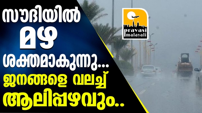 സൗദി അറേബ്യയുടെ മധ്യ, കിഴക്കൻ പ്രവിശ്യകളിൽ ഇടിമിന്നലോടുകൂടിയ ശക്തമായ മഴയും ആലിപ്പഴ വർഷവും. മറ്റ് പ്രവിശ്യകളിൽ ശീതകാറ്റും. റിയാദ് നഗരം ഉൾപ്പെട്ട മധ്യപ്രവിശ്യയിൽ ശനിയാഴ്ച രാത്രി ഹുങ്കാര ശബ്ദത്തോടെയാണ് മഴ ഇരച്ചെത്തിയത്, കൂടെ ആലിപ്പഴ വർഷവും. ഇടിമിന്നലിെൻറ അകമ്പടിയുമുണ്ടായി. പല ഭാഗങ്ങളിലും രാത്രി മുഴുവൻ മഴ പെയ്തു. റിയാദ് നഗരത്തിലുൾപ്പെടെ ഞായറാഴ്ച പകലും മഴയുണ്ടായിരുന്നു. ഇടയ്ക്ക് മഴ തോർന്നെങ്കിലും ആകാശം മേഘാവൃതമായിരുന്നു. ഉച്ചനേരത്ത് നഗരത്തെ കോടമഞ്ഞ് പൊതിയുകയും ചെയ്തു. താപനില നന്നായി താഴ്ന്നു. വെള്ളി, ശനി ദിവസങ്ങളിൽ തണുപ്പ് പൂർണമായി മാറുകയും ഉഷ്ണനില ഉയരുകയും ചെയ്തിരുന്നു.