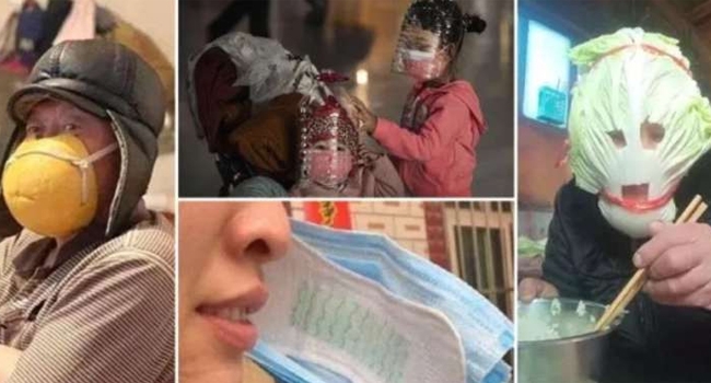 വൈറസ് ശക്തിപ്രാപിക്കുന്നുവെന്ന റിപ്പോര്ട്ടുകള് പുറത്തുവന്നതോടെ മെഡിക്കല് സ്റ്റോറുകള്ക്ക് മുന്നില് തിക്കും തിരക്കുമാണ്. നിമിഷങ്ങള്ക്കുള്ളില് മാസ്കുകളടക്കമുള്ള വ്യക്തിശുചിത്വ വസ്തുക്കള് വിറ്റുകഴിഞ്ഞു. വൈറസ് ഭീതിയെ തുടര്ന്ന് രാജ്യത്തെ പ്രധാനപ്പെട്ട നഗരങ്ങളിലാവട്ടെ കടകമ്പോളങ്ങള് അടഞ്ഞുകിടക്കുകയാണ്. മറ്റൊരു വഴിയും ഇല്ലാതായതോടെയാണ് ആളുകള് സാനിറ്ററും നാപ്കിനും പച്ചക്കറിത്തോടുകളും പ്ലാസ്റ്റിക് കവറുകളും അടിവസ്ത്രങ്ങളും തുടങ്ങി ഹെല്മെറ്റ് വരെ മാസ്കുകള്ക്ക് പകരം ഉപയോഗിച്ച് തുടങ്ങിയത്. ഇവയുടെ ചിത്രങ്ങളും വീഡിയോകളും സോഷ്യല് മീഡിയയില് വ്യാപകമായി പ്രചരിക്കുന്നുണ്ട്. '