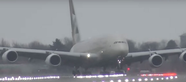 ലണ്ടനിലെ ഹീത്രൂ വിമാനത്താവള പ്രദേശത്ത് ശക്തിയിൽ വീശിയ ക്രോസ് വിൻഡാണ് വിമാനങ്ങളുടെ ലാൻഡിങ് ബുദ്ധിമുട്ടിലാക്കിയത്. വിമാനം ഏതാണ്ട് ലംബമായാണ് ലാൻഡിങ് നടത്തിയത്. ഇതിനിടെ റൺവേയിൽ നിന്ന് ഇടക്ക് പുറത്തേക്ക് പോകുന്നതും കാണാം.