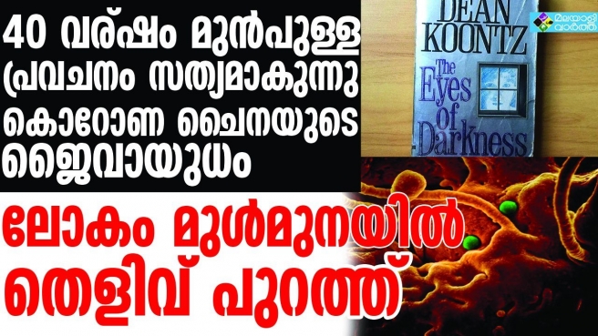 കൊറോണ ചൈനയുടെ ജൈവായുധം; 40 വർഷം മുൻപുള്ള പ്രവചനം സത്യമാകുന്നു; ചൈനയിലെ വുഹാനില് ഒരു വൈറസ് പൊട്ടിപ്പുറപ്പെടുമെന്ന് നാല്പത് വര്ഷങ്ങള്ക്ക് മുമ്ബ് പുറത്തിറങ്ങിയ 'ദ ഐസ് ഓഫ് ഡാര്ക്നെസ്' എന്ന ത്രില്ലര് നോവലിൽ പ്രവചനം