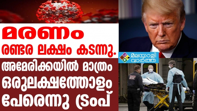 കോവിഡ് മഹാമാരിയില് മരിച്ചവരുടെ എണ്ണം രണ്ടര ലക്ഷം കടന്നു... അമേരിക്കയില് മാത്രം ഒരുലക്ഷത്തോളം പേരെന്നു ട്രംപ്