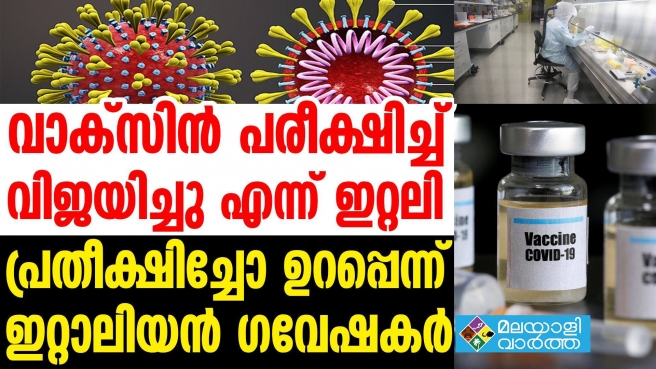 കൊവിഡ് 19 എതിരെ വാക്സിന് കണ്ടെത്തിയെന്ന് ഇറ്റലി; പ്രതീക്ഷക്കപ്പുറമാണ് ലഭിച്ച ഫലമെന്ന് ഗവേഷണത്തില് പങ്കെടുത്ത ശാസ്ത്രജ്ഞര്; ഇസ്രയേലിന്റെ കണ്ടുപിടിത്തം വാര്ത്തകളില് നിറഞ്ഞുനില്ക്കുമ്പോഴാണ് ഇറ്റലിയില് നിന്നുമുള്ള ശുഭ വാര്ത്ത