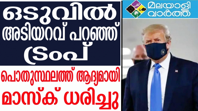 ഒടുവില് അടിയറവ് പറഞ്ഞ് ട്രംപ്... പൊതുഇടങ്ങളില് മാസ്ക് ധരിക്കില്ലെന്ന പിടിവാശി ഉപേക്ഷിച്ച് അമേരിക്കന് പ്രസിഡന്റ് ഡൊണാള്ഡ് ട്രംപ്... കഴിഞ്ഞദിവസം സൈനിക ആശുപത്രി സന്ദര്ശിക്കാനെത്തിയപ്പോഴാണ് ട്രംപ് ആദ്യമായി മാസ്ക് ധരിച്ചത്