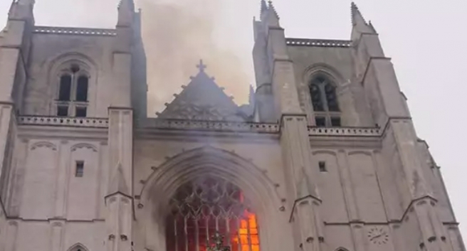 പടിഞ്ഞാറന് ഫ്രഞ്ച് നഗരമായ നാന്റെസിലെ വിഖ്യാതമായ ക്രിസ്ത്യന് ദേവാലയത്തില് വന്തീപിടിത്തം..ഗോതിക് ശില്പ്പകലയിലുള്ള കത്തീഡ്രല് 1434ല് ആണ് പണി തുടങ്ങിയത്; 457 വര്ഷമെടുത്താണ് പണി പൂര്ത്തിയായത്