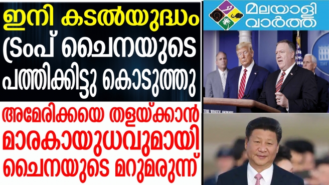 മൈക്ക് പോംപിയോ പറഞ്ഞതും ട്രംപ് കല്പിച്ചതും.... ഇനി കടല്യുദ്ധം ട്രംപ് ചൈനയുടെ പത്തിക്കിട്ടു കൊടുത്തു... അമേരിക്കയെ തളയ്ക്കാന് മാരകായുധവുമായി ചൈനയുടെ മറുമരുന്ന്