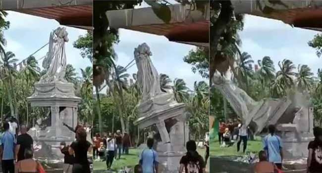 ഫ്രഞ്ച് കോളനി സ്ഥാപിച്ചവരില് പ്രധാനിയായ വ്യാപാരി പിയറി ബെലൈന്റെ പ്രതിമയും അക്രമാസക്തരായ ജനക്കൂട്ടം തകര്ത്തു. പ്രതിമകള് എത്രയും പെട്ടെന്നു മാറ്റിയില്ലെങ്കില് പൂര്ണമായും തച്ചുടയ്ക്കുമെന്ന മുന്നറിയിപ്പുകള് കഴിഞ്ഞ ആഴ്ച സാമൂഹിക മാധ്യമങ്ങളില് പ്രചരിച്ചിരുന്നു.