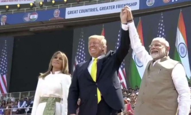 ഹൂസ്റ്റണിലെ ഇന്ത്യന്-അമേരിക്കക്കാര്ക്ക് മുമ്ബില് ട്രംപിനെ പ്രകീര്ത്തിച്ച് മോദി സംസാരിക്കുന്ന രംഗങ്ങളാണ് തെരഞ്ഞെടുപ്പ് വിഡിയോയില് ആദ്യം. പിന്നാലെ ഇന്ത്യക്കാരെ പ്രകീര്ത്തിച്ച് ട്രംപ് അഹമ്മദാബാദില് നടത്തിയ പ്രസംഗവുമുണ്ട്. ട്രംപിന്റെ രണ്ടുദിന ഇന്ത്യാ സന്ദര്ശനത്തിനിടെയാണ് അഹമ്മദാബാദില് മോദിയോടൊപ്പം വന് ജനാവലിയെ അഭിസംബോധന ചെയ്തത്. ഭാര്യ മെലാനിയ, മകള് ഇവാന്ക, മരുമകന് ജെര്ഡ് കുഷ്നര് എന്നിവര് ഒപ്പമുണ്ടായിരുന്നു.
