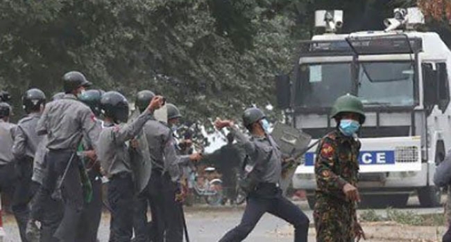 മാണ്ഡലെയിലെ യാദനാര്ബന് ഷിപ്പ് യാര്ഡില് പ്രതിഷേധക്കാരെ തടയാന് വലിയ പോലീസ് സന്നാഹവും സൈന്യവും നിലയുറപ്പിച്ചിരുന്നു. പ്രതിഷേധക്കാര് ഇവരോട് പിന്മാറാന് ആവശ്യപ്പെട്ടെങ്കിലും സുരക്ഷാ സേന തയ്യാറായില്ല.