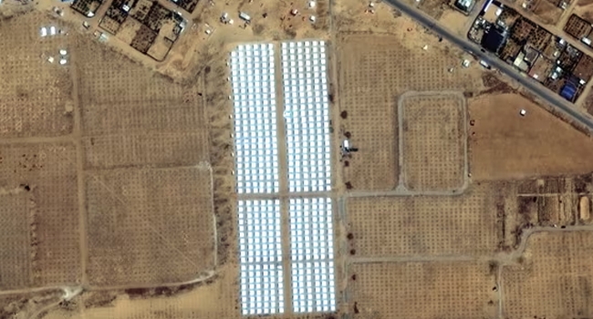 ഓണ്ലൈനില് പ്രചരിക്കുന്ന ഫൂട്ടേജുകള് റാഫയില് നിന്ന് ഏകദേശം 5 കിലോമീറ്റര് അകലെയുള്ള ഖാന് യൂനിസില് ചതുരാകൃതിയിലുള്ള വെളുത്ത കൂടാരങ്ങള് നിരത്തിയതായി കാണിക്കുന്നു. സാറ്റലൈറ്റ് കമ്പനിയായ മാക്സര് ടെക്നോളജീസിന്റെ ചിത്രങ്ങള് പരിശോധിച്ചതില് നിന്നാണ് ഖാന് യൂനിസില് ഒഴിഞ്ഞ ഭൂമിയില് ടെന്റുകള് സ്ഥാപിച്ചതായി മനസിലാക്കാന് സാധിച്ചത്.