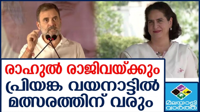 ഉത്തര്പ്രദേശിലെ റായ്ബറേലിയില് രാഹുല് ഗാന്ധി വിജയിച്ചാല്, വയനാട് സീറ്റ് രാഹുല് ഗാന്ധി ഉപേക്ഷിക്കും.... അങ്ങനെയെങ്കില് പ്രിയങ്കാ ഗാന്ധിയെ വയനാട്ടില് കോണ്ഗ്രസ് സ്ഥാനാര്ഥിയാക്കാനാണ് കോണ്ഗ്രിന്റെ തീരുമാനം....