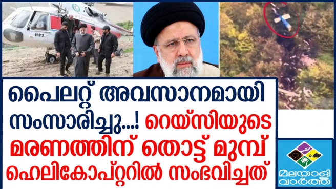 ഹെലികോപ്റ്റർ മുൻകൂട്ടി നിശ്ചയിച്ച പാതയിൽ തന്നെയാണ് സഞ്ചരിച്ചിട്ടുള്ളത്.... ഇവരുടെ ഫ്ളൈറ്റ് റൂട്ട് മാറിയിട്ടില്ല.... അപകടമുണ്ടാകുന്നതിന് ഏകദേശം ഒന്നര മിനിറ്റ് മുൻപ് ഹെലികോപ്റ്ററിലെ പൈലറ്റ്, പ്രസിഡന്റിന് അകമ്പടിയായെത്തിയ മറ്റ് രണ്ട് ഹെലികോപ്റ്ററുകളുമായി ബന്ധപ്പെടാൻ ശ്രമിച്ചിട്ടുണ്ട്... ആദ്യ അന്വേഷണ റിപ്പോർട്ട് പുറത്ത് വിട്ട് ഇറാൻ