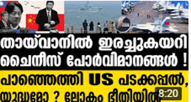 കെണിയൊരുക്കി ചൈന .. തയ്വാൻ വ്യോമമേഖലയിൽ യുദ്ധവിമാനങ്ങൾ...മറ്റൊരു യുദ്ധത്തിന്റെ കോപ്പ് കൂട്ടൽ!!