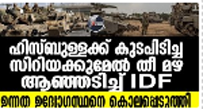 ഇസ്രായേൽ -ഹമാസ് യുദ്ധം സിറിയയിലേക്ക്.. ഉന്നത ഉദ്യോഗസ്ഥനെ കൊലപ്പെടുത്തി ;കൊല്ലപ്പെട്ട ഉദ്യോഗസ്ഥൻ ലെബനനിലെ ഹിസ്ബുള്ള ഗ്രൂപ്പുമായി അടുപ്പമുള്ളയാളാണെന്ന് റിപ്പോർട്ടുകൾ..ക്യൂനൈത്രയിലെയും ദാറയിലെയും രണ്ട് സിറിയൻ സൈനിക സൈറ്റുകൾ ഡ്രോൺ ഉപയോഗിച്ച് ആക്രമിച്ചതായി IDF
