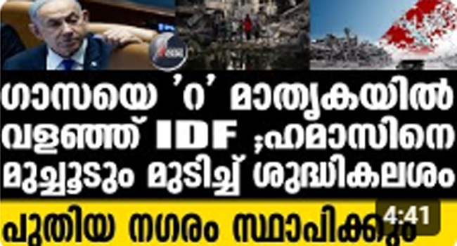 ഗാസയെ 'റ' മാതൃകയില് വളഞ്ഞ് IDF ;വടക്കൻ ഗാസയിൽ പുതിയ നഗരം സ്ഥാപിക്കാൻ പ്രത്യേക പദ്ധതി
