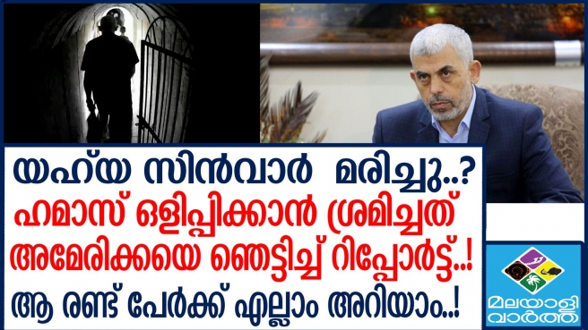 ഹമാസ് നേതാവ് യഹ്യ സിൻവാർ എവിടെയാണെന്ന വിവരം രണ്ടോ മൂന്നോ ആളുകൾക്കല്ലാതെ മറ്റാർക്കും അറിയില്ലെന്ന് റിപ്പോർട്ട്.... ലണ്ടൻ ആസ്ഥാനമായുള്ള അഷർഖ് അൽ ഔസത്ത് എന്ന പത്രമാണ് ഹമാസ് വൃത്തങ്ങളെ ഉദ്ധരിച്ച് ഇക്കാര്യം റിപ്പോർട്ട് ചെയ്തത്...