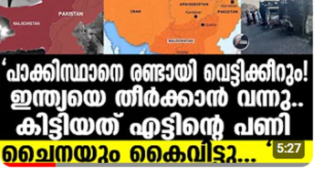 ഇന്ത്യയ്ക്ക് നേരെ തീവ്രവാദ ആക്രമണം നടത്താൻ പ്രയത്നിച്ച പാകിസ്ഥാന് കിട്ടിയ ഇരുട്ടടി തന്നെയാണ് ഇപ്പൾ ബലൂചിസ്ഥാനിലെ കലാപം . ഒരു സ്വാഹാന്തര രാഷ്ട്രമാകണം എന്ന ബലൂചിസ്ഥാന്റെ മോഹം ഏതായാലും നടക്കുകതന്നെ ചെയ്യും . അതുപ്പോലെ ഇന്ത്യ വിചാരിച്ചാൽ ഇന്നേക് ഇന്ന് ഇന്ത്യയുടെ ഭാഗമാകാൻ ആഗ്രഹിക്കുന്ന രാജ്യമാണ് ബലൂചിസ്ഥാൻ .