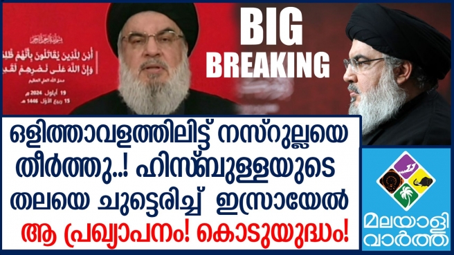 ലോകത്തെ ഭീതിയിലാഴ്ത്താൻ ഹസൻ നസ്റല്ലയ്ക്ക് ഇനി കഴിയില്ല; ഹിസ്ബുല്ല മേധാവി ഹസൻ നസ്റല്ലയെ കൊലപ്പെടുത്തി എന്ന് ഔദ്യോഗികമായി സ്ഥിരീകരിച്ച് ഇസ്രായേൽ