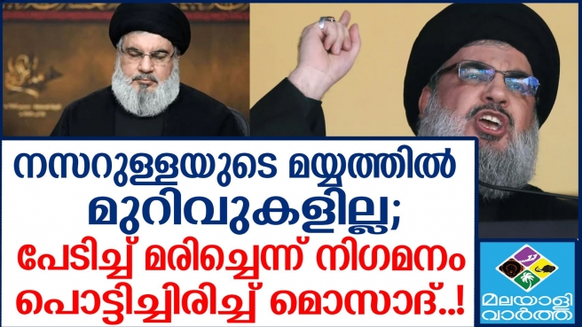 ഹിസ്ബുള്ള തലവൻ സയ്യിദ് ഹസൻ നസറുള്ളയുടെ മൃതദേഹം കണ്ടെത്തി... ശരീരത്തിൽ സ്ഫോടനം നടന്നത് കൊണ്ടുള്ള മുറിവുകളൊന്നുമില്ല...!ഹിസ്ബുല്ലയുടെ ഉന്നത നേതാക്കളിലൊരാളായ കമാന്ഡര് നബീല് കൗക്കിനെയും വ്യോമാക്രമണത്തില് വധിച്ചെന്ന് ഇസ്രയേല് സൈന്യം