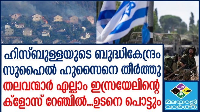 ഹിസ്ബുള്ളയുടെ ലോജിസ്റ്റിക് യൂണിറ്റിന്റെ കമാന്ഡര്, സുഹൈല് ഹുസൈന് ഹുസൈനിയെ വധിച്ചെന്ന് ഇസ്രയേല് സൈന്യം...വ്യോമാക്രമണത്തിലാണ് സുഹൈല് കൊല്ലപ്പെട്ടത്...