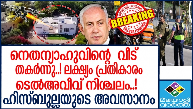 ഇസ്രായേൽ പ്രധാനമന്ത്രി ബെഞ്ചമിൻ നെതന്യാഹുവിനെ ലക്ഷ്യമിട്ട് ഹിസ്ബുല്ല ആക്രമണം....നെതന്യാഹുവിന്റെ വസതി ലക്ഷ്യമിട്ടാണ് ആക്രമണം നടന്നതെന്ന് ഇസ്രായേൽ