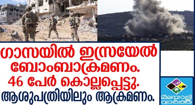 സമാധാന ശ്രമങ്ങള് അകലെയാക്കി ഗാസയില് ഇസ്രയേല് നടത്തിയ വ്യാപക ബോംബാക്രമണത്തില് 46 പലസ്തീന് സ്വദേശികള് കൊല്ലപ്പെട്ടു. വടക്കന് ഗാസയിലാണ് കൂടുതല് മരണം റിപ്പോര്ട്ട് ചെയ്തത്. വടക്കന് ഗാസയിലെ കമല് അദ്വാന് ആശുപത്രിക്കു നേരെ ഇസ്രയേല് ബോംബാക്രമണത്തില് മരുന്നുകളും ആശുപത്രി ഉപകരണങ്ങളും സംഭരിച്ച കെട്ടിടം തകര്ന്നു. ആശുപത്രി ജീവനക്കാര്ക്ക് പരുക്കേറ്റു.