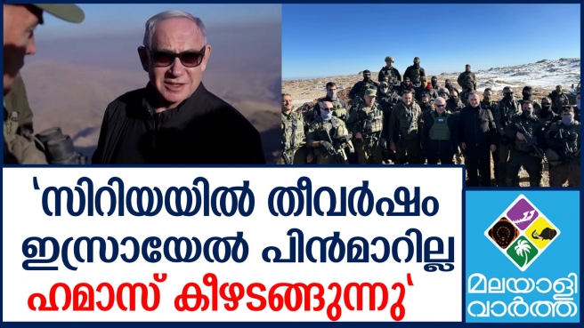 സിറിയയിലും ലബനോനിലും വീണ്ടും ഇസ്രായേലിന്റെ തീവര്ഷം. സിറിയയിലെ ആയുധശാലകള് അപ്പാടെ ചുട്ടെരിച്ചുകൊണ്ട് ഇസ്രായേല് കനത്ത മിസൈല്വര്ഷം തുടരുകയാണ്. ഏതെങ്കിലും സാഹചര്യത്തില് യുദ്ധം അവസാനിച്ചാല്തന്നെ സിറിയന് അതിര്ത്തിയിലെ ബഫര് സോണില്നിന്ന് സൈന്യത്തെ പിന്വലിക്കില്ലെന്ന് ഇസ്രയേല് പ്രധാനമന്ത്രി ബെഞ്ചമിന് നെതന്യാഹു മുന്നറിയിപ്പു നല്കുകയും ചെയ്തിരിക്കുന്നു. ഇസ്രായേലിന്റെ നിയന്ത്രണത്തിലുള്ള ഗോലാന് കുന്നുകളോട് ചേര്ന്ന ബഫര് സോണില്നിന്ന് സൈന്യത്തെ പിന്വലിക്കണമെന്ന സിറിയയുടെ ആവശ്യം നെതന്യാഹു നിഷ്കരുണം തള്ളിയതോടെ യുദ്ധം തുടരുമെന്ന് ഏറെക്കുറെ വ്യക്തമാണ്.