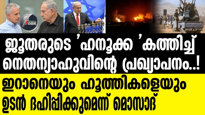 ഇറാനെ ആക്രമിക്കുന്നതിൽ ശ്രദ്ധ കേന്ദ്രീകരിക്കാൻ മൊസാദ് മേധാവി ഡേവിഡ് ബാർണിയ...ഹൂതികൾക്കെതിരെ തന്നെ ആക്രമണം നടത്താൻ, പ്രധാനമന്ത്രി ബെഞ്ചമിൻ നെതന്യാഹു...ഹനൂക്കയുടെ ആദ്യത്തെ മെഴുകുതിരി കത്തിച്ച് ജൂതർ...