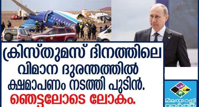 ഉത്തരവാദിത്വം ഇല്ലെന്ന്... അസര്ബൈജാന് എയര്ലൈന്സ് വിമാനം തകര്ന്ന് 38 പേര് മരിച്ച സംഭവത്തില് ക്ഷമാപണം നടത്തി റഷ്യന് പ്രസിഡന്റ് വ്ലാദമിര് പുടിന്; പക്ഷെ ഉത്തരവാദിത്വം ഏറ്റെടുത്തിട്ടില്ല