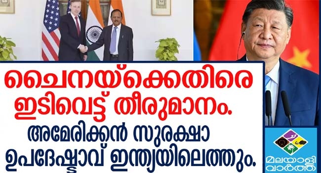 ചൈന അണക്കെട്ട് ആശങ്ക... അമേരിക്കന് ദേശീയ സുരക്ഷാ ഉപദേഷ്ടാവ് ജേക്ക് സള്ളിവന് ഇന്ന് ഇന്ത്യയിലെത്തും; നിര്ണായക ചര്ച്ചകള് നടത്തും; ചൈന അണക്കെട്ട് മുഖ്യ ചര്ച്ച?