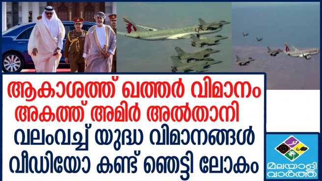 ഖത്തർ എയർവേയ്സ് വിമാനം പറക്കുന്നു..വിമാനത്തിനുള്ളിൽ ഖത്തർ അമിർ ഹിസ് ഹൈനസ് അൽതാനി..ചുറ്റിലും വലം വച്ച് യുദ്ധവിമാനങ്ങൾ ചീറിപ്പറക്കുന്നു..വീഡിയോയ്ക്ക് താഴെ പങ്കുവച്ച കുറിപ്പ് ഇപ്രകാരം...