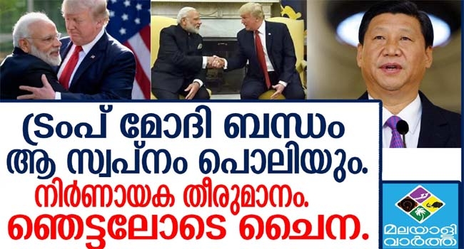 വമ്പന് മാറ്റങ്ങള്ക്ക് തുടക്കം... ട്രംപ് - മോദി കൂടിക്കാഴ്ചയില് ചൈനയുടെ സ്വപ്നം പൊലിയും; വഴിയൊരുങ്ങുന്നത് ഇന്ത്യന് സാമ്പത്തിക രംഗത്ത് വന്മാറ്റങ്ങള്ക്ക്