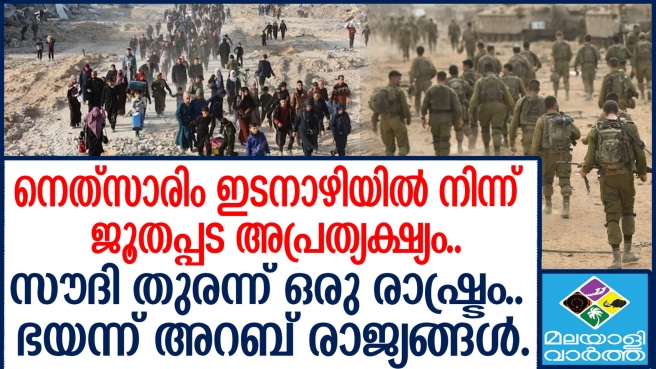 ട്രംപിന്റെ നീക്കങ്ങളിൽ ഹമാസിനെ പോലെ ഭയന്ന് ഇരിക്കുന്ന മറ്റൊരു രാജ്യമാണ് അറബ് രാജ്യങ്ങൾ . ഗാസയിലെ പ്രധാന ഇടനാഴിയില് നിന്ന് ഇസ്രയേല് സൈന്യം പിന്മാറുമ്പോള് ഇനി അറിയേണ്ടത് അമേരിക്കയുടെ അടുത്ത നീക്കം. വെടിനിര്ത്തല്ക്കരാറിലെ വ്യവസ്ഥപ്രകാരം ഇസ്രയേല് പിന്മാറ്റം. വടക്കന് ഗാസയുടെയും തെക്കന് ഗാസയുടെയും നടുവിലായി സ്ഥിതിചെയ്യുന്ന നെത്സാരിം ഇടനാഴിയില്നിന്നാണ് സൈന്യം ഞായറാഴ്ച പിന്മാറിയത്.