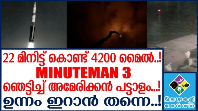 ഏറ്റവും പുതിയ ഹൈപ്പര്സോണിക് മിസൈല് വിജയകരമായി പരീക്ഷിച്ച് അമേരിക്കന് വ്യോമസേന. ഒരു മൂന്നാം ലോകമഹായുദ്ധത്തിന് അരങ്ങൊരുങ്ങുന്നു എന്ന അഭ്യൂഹങ്ങള്ക്കിടയിലാണ് അമേരിക്ക ഈ അതിനൂതനമായ ആണവ മിസൈല് വിജയകരമായി പരീക്ഷിച്ചിരിക്കുന്നത്. മിന്യൂട്ട്മാന് 3 എന്ന് പേരിട്ടിരിക്കുന്ന ഈ ഇന്റര്കോണ്ടിനന്റല് ബാസലിസ്റ്റിക് മിസൈല് കാലിഫോര്ണിയയിലെ വാന്ഡന്ബര്ഗ് സ്പേസ് ഫോഴ്സ് ബേസില് നിന്നാണ് വിക്ഷേപിച്ചത്.