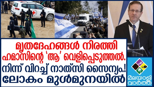 വികാരനിർഭരരായി കാത്തുനിന്ന ജനക്കൂട്ടത്തെ സാക്ഷി നിർത്തി ബന്ദികളുടെ മൃതദേഹം കൈമാറി ഹമാസ്; ‘യുദ്ധക്കുറ്റവാളി നെതന്യാഹുവും അയാളുടെ നാത്സി സൈന്യവും സയണിസ്റ്റ് യുദ്ധവിമാനങ്ങളിൽ നിന്ന് മിസൈൽ വർഷിച്ച് ഇവരെ കൊന്നു...